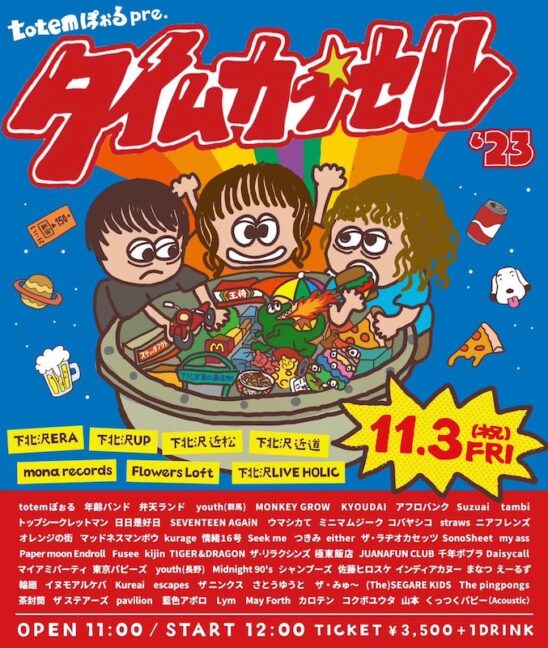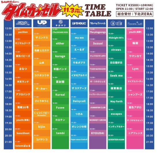 - 前売り ¥3,500/当日¥4,000(+1D)前売り ¥3,500/当日¥4,000(+1D)
