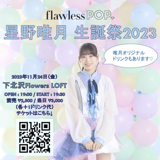SCHEDULE 2023 11 24 Friday 星野唯月生誕祭2023 OPEN 19:00 - START 19:30 Tweet flawless POP. TICKETADV¥2500 / DOOR¥3000(DRINK代別¥600) [発売]Live Pocket 11月10日(金)22:00〜 https://t.livepocket.jp/e/zx93c ■お問合せ 株式会社GOAT https://goat-mng.com/inquiry/ Share