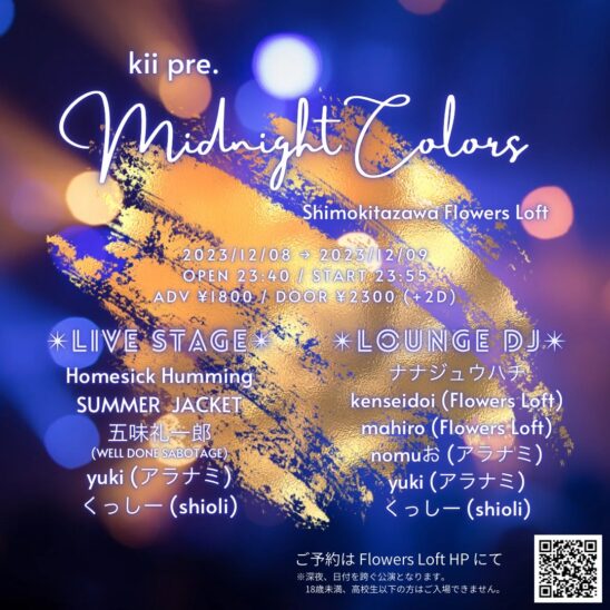 - ADV ¥1,800 / DOOR ¥2,300(2D+¥1,200)