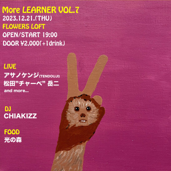 SCHEDULE 2023 12 21 Thursday More LEARNER vol.7 OPEN 19:00 - START 19:00 Tweet LIVE アサノケンジ (TENDOUJI) 松田”チャーベ”岳二 … and more DJ CHIAKIZZ FOOD 光の森 TICKETDOOR ¥2,000 (+1drink) Share このイベントの予約は締めきりました。
