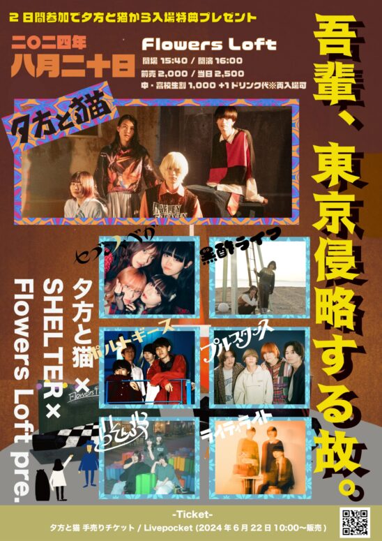 夕方と猫手売りチケット(6/26ライブ終演後より販売開始)