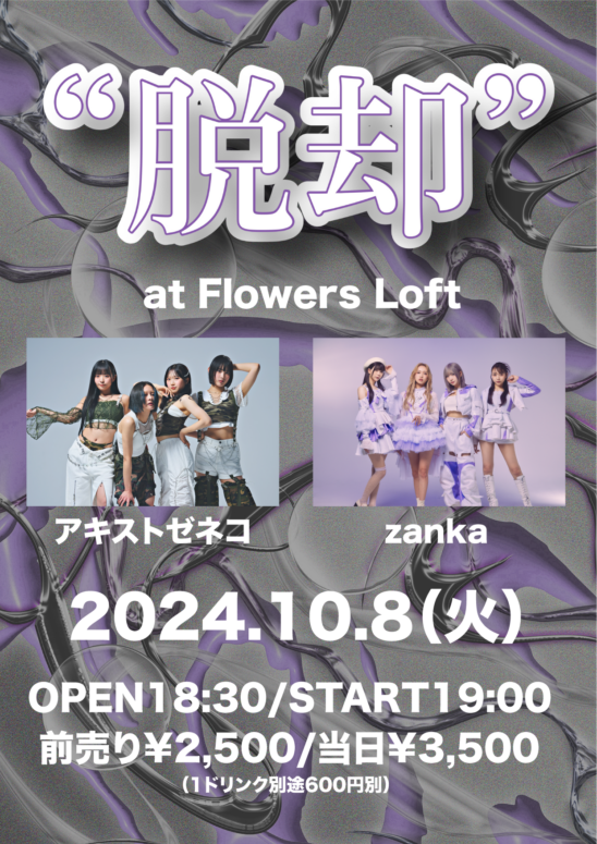 SCHEDULE 2024 10 08 Tuesday 脱却 OPEN 18:30 - START 19:00 Tweet 出演: アキストゼネコ zanka TICKET前売り¥2,500/当日¥3,500 #アキストゼネコ#zanka Share