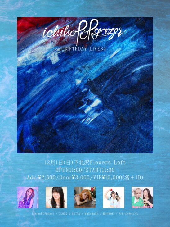 VIPチケット:終演後16:00-18:00(予定)下北沢付近の別会場(居酒屋予定)にてichihoPOPgazerとの打ち上げ参加権付き