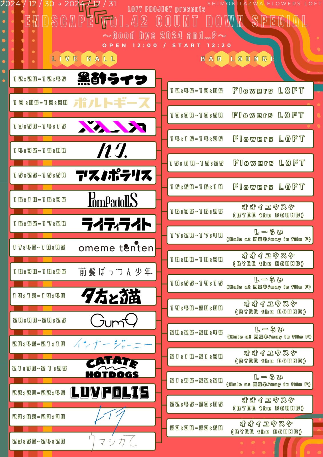 - OPEN 12:00 / START 12:25 予定 / CLOSE 24:40