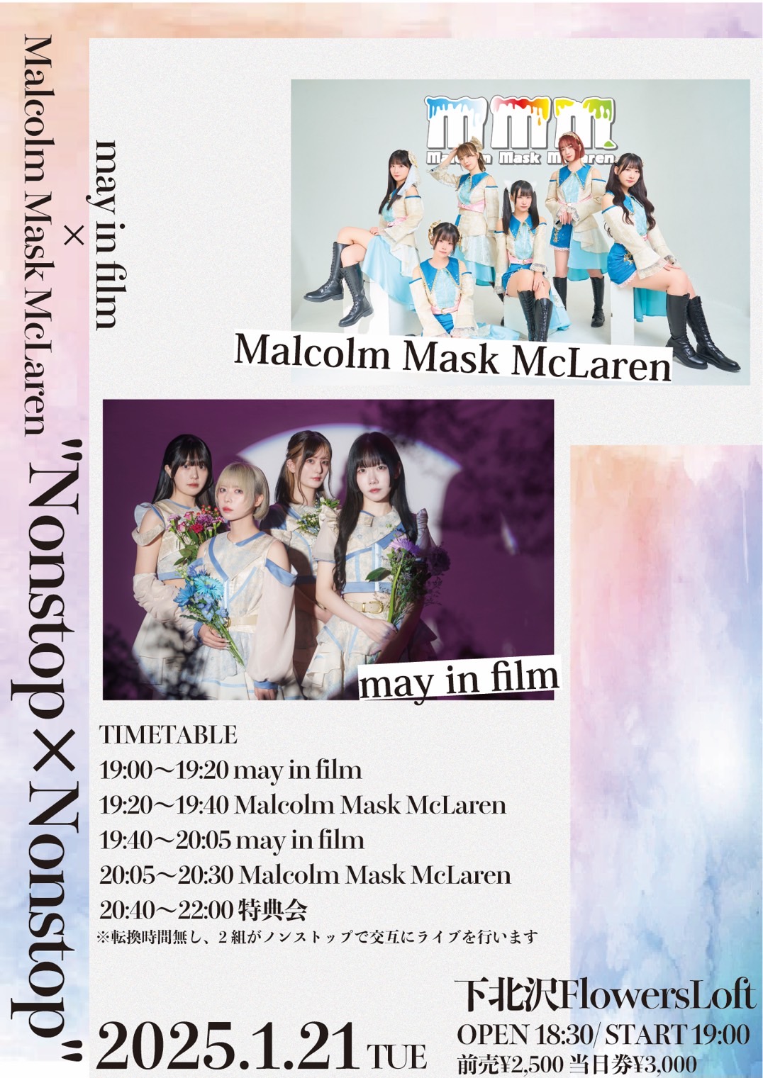 SCHEDULE 2025 01 21 Tuesday may in film × Malcolm Mask McLaren 「Nonstop × Nonstop」 OPEN 18:30 - START 19:00 Tweet 出演: may in film Malcolm Mask McLaren TICKET前売り¥2,500/当日¥3,000 チケットURL→https://t.livepocket.jp/e/mifmmm1 #may in film#Malcolm Mask McLaren Share
