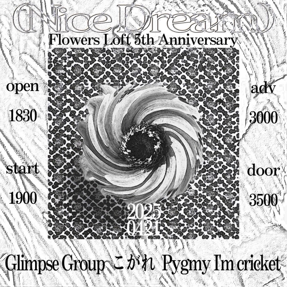 SCHEDULE 2025 04 21 Monday (Nice Dream) OPEN 18:30 - START 19:00 Tweet Glimpse Group こがれ Pygmy I’m cricket TICKETADV ¥3,000 / DOOR ¥3,500(+1d) 【TICKET】 出演者予約 #Glimpse Group#こがれ#Pygmy I’m cricket Share