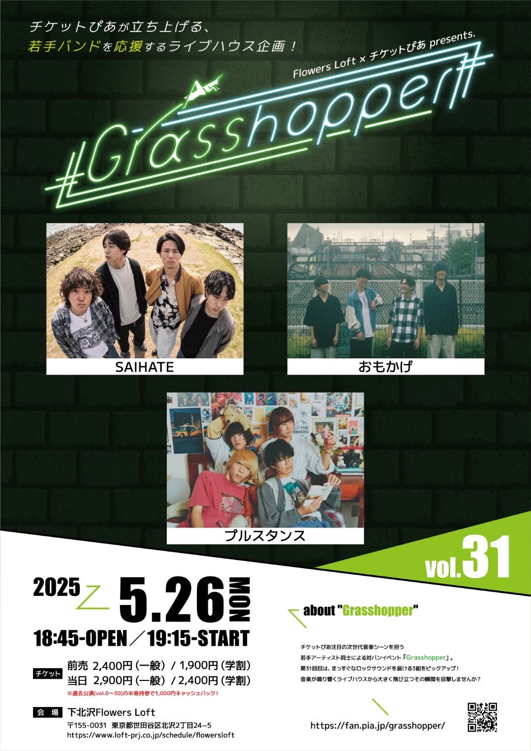 SCHEDULE 2025 05 26 Monday Flowers Loft × チケットぴあ presents. Grasshopper vol.31 OPEN 18:45 - START 19:15 Tweet SAIHATE おもかげ プルスタンス TICKETADV 一般 ¥2,400 / 学割 ¥1,900(+1D) DOOR 一般 ¥2,900 / 学割 ¥2,400(+1D) ※過去公演(vol.0~30)の半券持参で1,000円キャッシュバック 【TICKET】 ぴあ(2025/3/24 21:00〜) #SAIHATE#おもかげ#プルスタンス Share