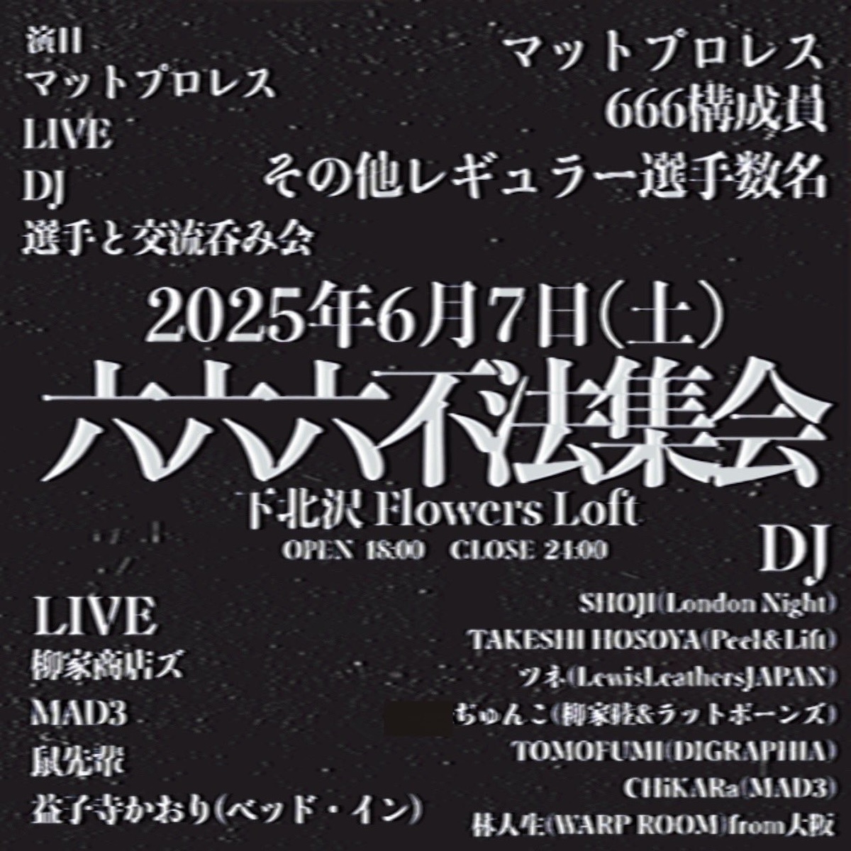 演目:マットプロレス / 音楽ライブ / DJ / 後楽園ホール出場選手と交流呑み会