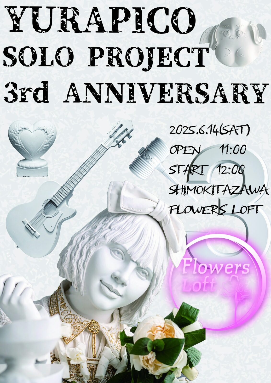 SCHEDULE 2025 06 14 Saturday DAY EVENT 「YURAPICO SOLO PROJECT 3rd ANNIVERSARY LIVE『3』」 OPEN 11:00 - START 12:00 Tweet 出演: ゆらぴこ TICKET◆チケット 入場無料 (要ドリンク代 ¥600-) 投げ銭制 ※当日投げ銭袋を配布いたします おひとり様につき「3円~3億円までの中で」投げ銭をお願いいたします。 ◆入場予約:Live Pocket(主催配券) https://t.livepocket.jp/e/yurasmile3rd_anniversary #ゆらぴこ Share
