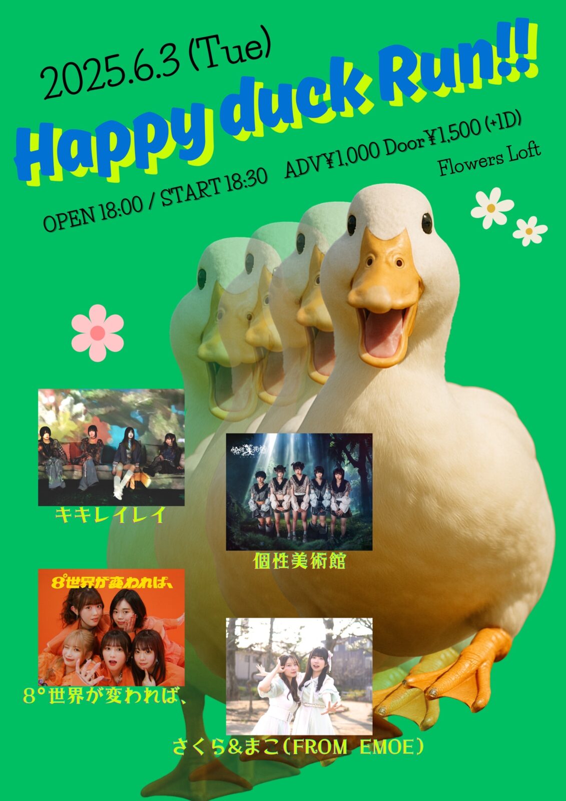 SCHEDULE 2025 06 03 Tuesday 『Happy duck Run!!』 OPEN 18:00 - START 18:30 Tweet 8°世界が変われば、 キキレイレイ 個性美術館 さくら&まこ(from EMOE) TICKETADV¥1,000 / Door¥1,500 (+1D) 【TICKET】https://t.livepocket.jp/e/uy7c5 #8°世界が変われば、#キキレイレイ#個性美術館#さくら&まこ(from EMOE) Share
