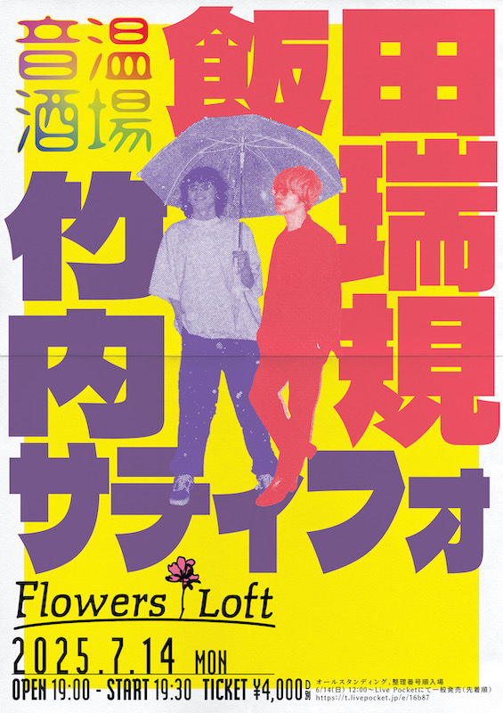 SCHEDULE 2025 07 14 Monday 音温酒場 OPEN 19:00 - START 19:30 Tweet 出演: 飯田瑞規 竹内サティフォ TICKETチケット: ¥4,000 (D別) ・オールスタンディング、整理番号順入場 6/14(土) 12:00~ Live Pocketにて一般発売(先着順) https://t.livepocket.jp/e/16b87 #飯田瑞規#竹内サティフォ Share