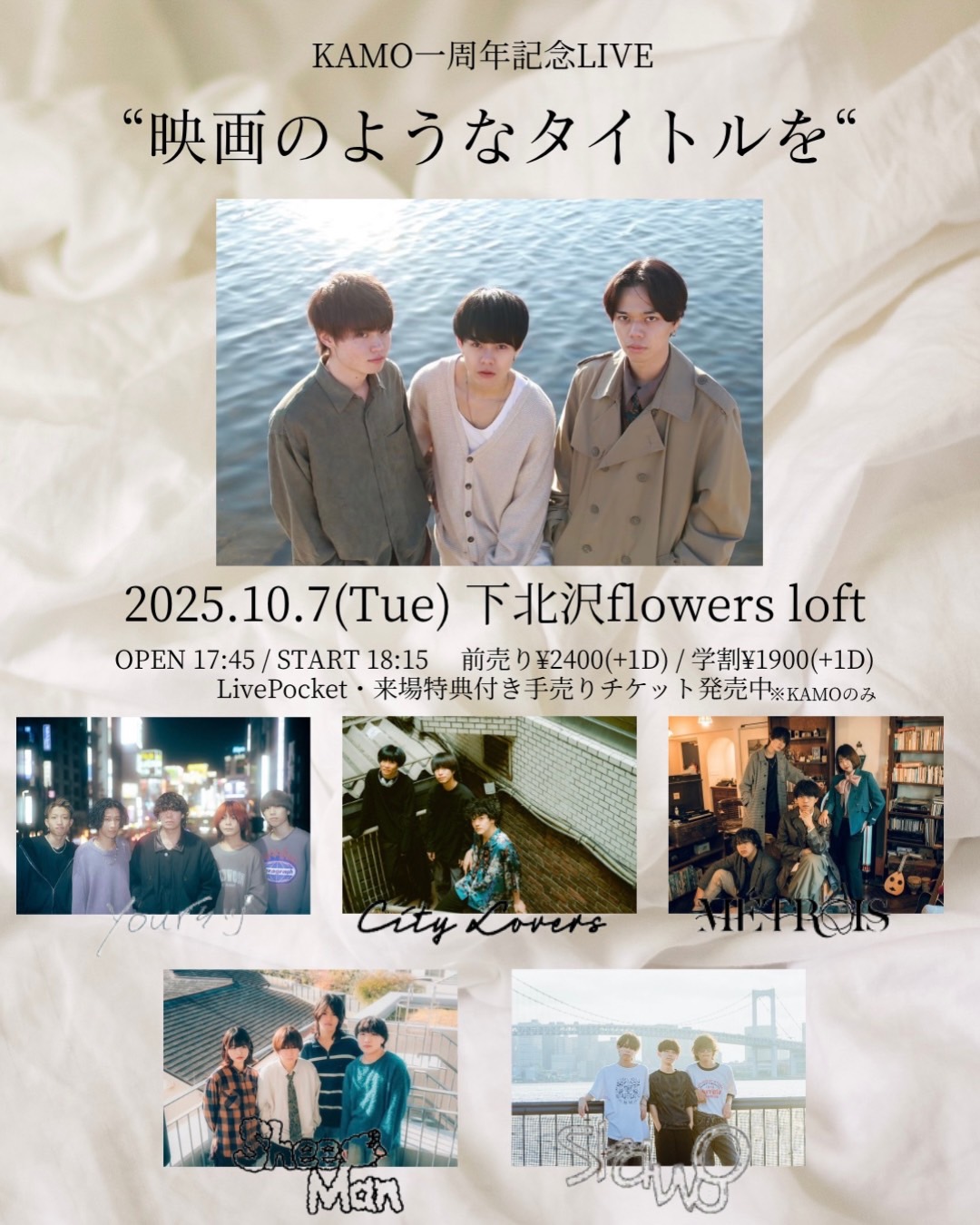 - ADV ¥2,400 / DOOR 未定 / 学割 ¥1,900(+1D)