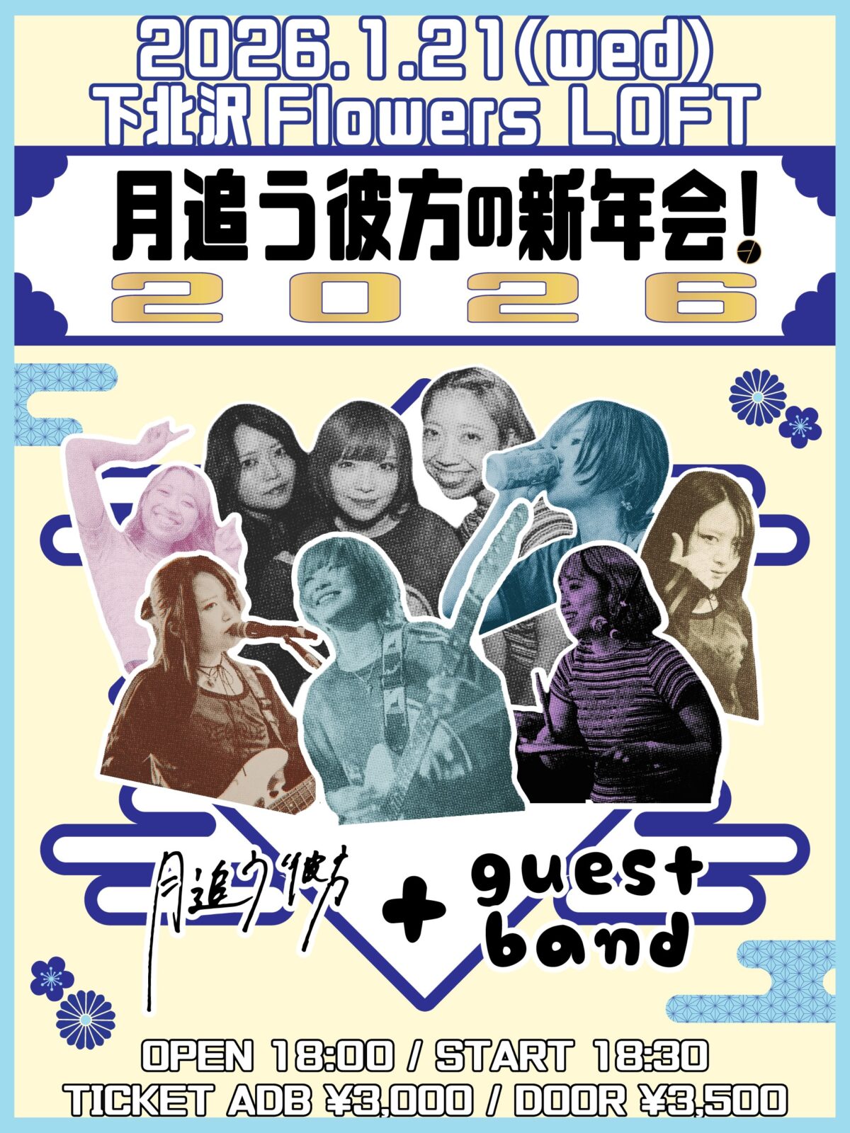 SCHEDULE 2026 01 21 Wednesday 「月追う彼方の新年会 2026」 OPEN 18:00 - START 18:30 Tweet 月追う彼方 and more…. TICKETADV ¥3,000 / DOOR ¥3,500(+1D) 【TICKET】 e+先行(先着)(2025/9/30 22:00~2025/12/21 23:59) e+一般発売 (2025/12/24 10:00〜) #月追う彼方 Share