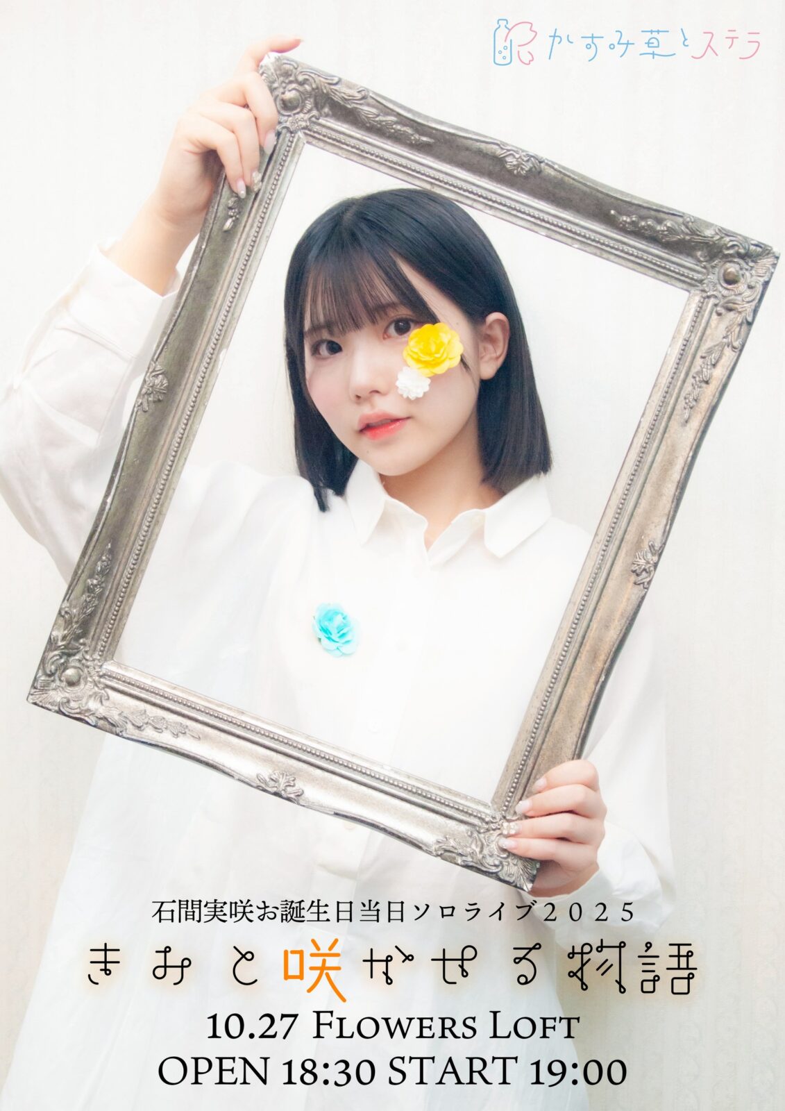 SCHEDULE 2025 10 27 Monday 石間実咲お誕生日当日ソロライブ2025 「きみと咲かせる物語」 OPEN 18:30 - START 19:00 Tweet 出演: 石間実咲 TICKET一般チケット:¥2,700 (各1D別) 取り扱い:TicketDive (受付URL:https://t-dv.com/Kastella_1027 ) 抽選先行:9/29(月)22:00〜10/12(日)23:59 一般発売:10/13(木)21:00〜10/27(月)19:00 Share