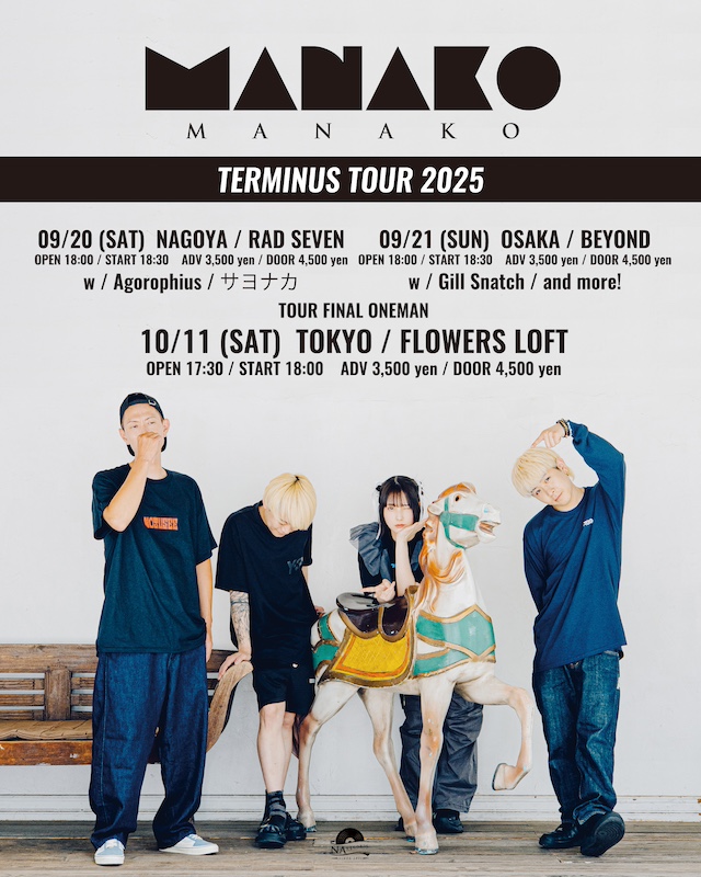 SCHEDULE 2025 10 11 Saturday MANAKO / TERMINUS Tour 2025 TOUR FINAL OPEN 17:30 - START 18:00 Tweet MANAKO TICKETADV ¥3,500(税込) / DOOR ¥4,500(税込) https://www.cnplayguide.com/evt/evtdtl.aspx?ecd=CNS07784 Share