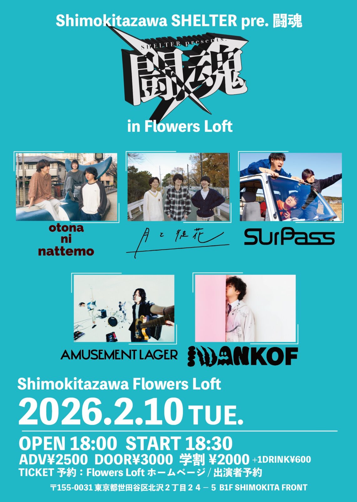 - ADV ¥2,500 / DOOR ¥3,000 / 学割 ¥2,000(+1D)