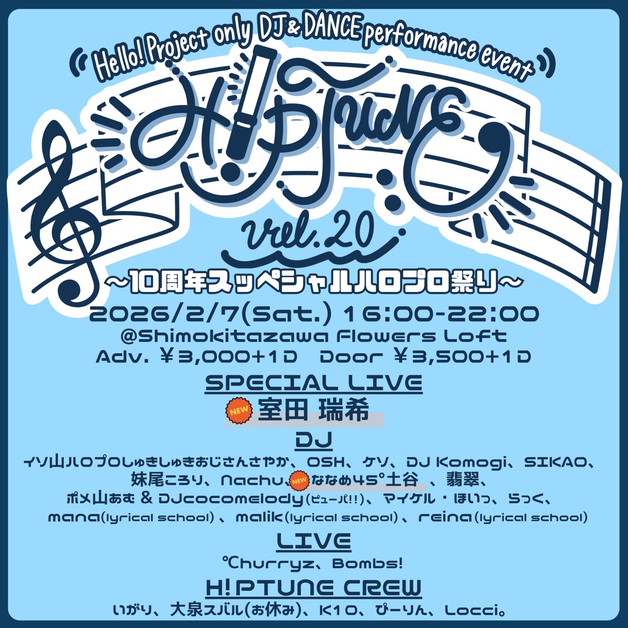 イソ山ハロプロしゅきしゅきおじさんさやか、OSH、ケソ、DJ Komogi、SIKAO、妹尾ころり、Nachu、ななめ45°土谷、翡翠、ポメ山あむ&DJcocomelody(ピューパ!!)、マイケル・ほいっ、らっく、mana(lyrical school)、malik(lyrical school)、reina(lyrical school)