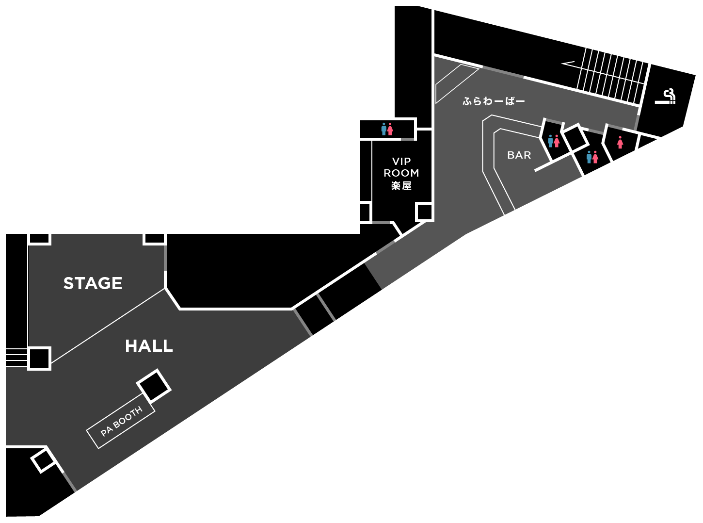 新宿LOFTにも似た2フロアで成り立っており、ステージがあるメインフロアは最大250人収容予定。