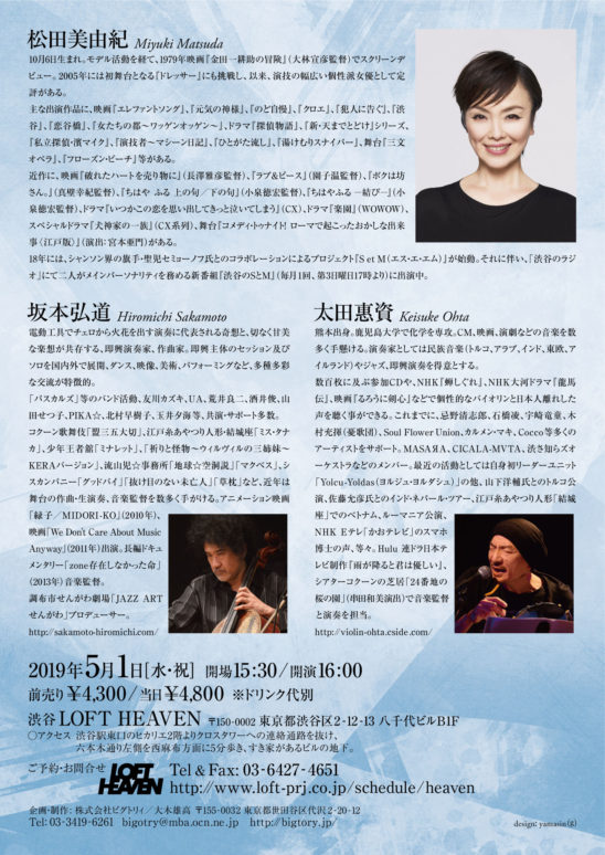 松田美由紀(朗読)坂本弘道(cello・music saw)太田惠資(violin・voice)