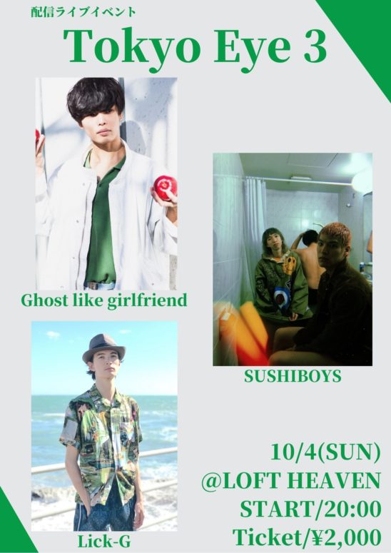今回はGhost like girlfriend、SUSHIBOYS、Lick-Gの3組が出演決定。