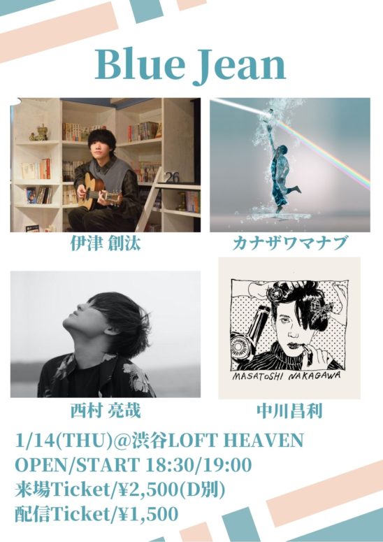 歌心有る良質なアーティストが共演する配信ライブ「Blue Jean」開催!