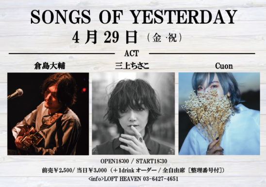 - 前売¥2,500円/当日¥3,000(ともに税込/+1D¥600)