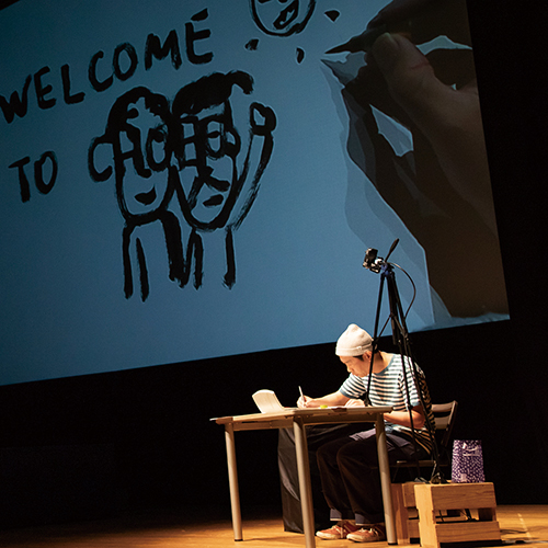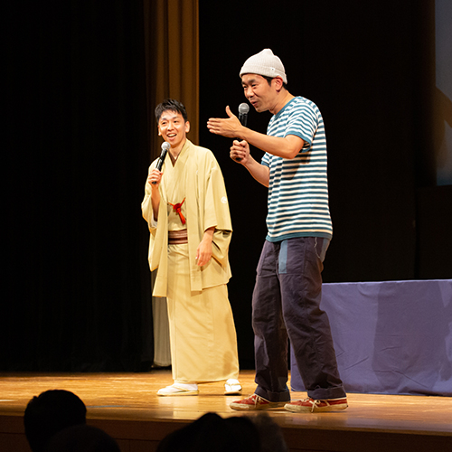 イラストレーター、キン・シオタニと落語家、立川晴の輔の異種コラボライブ。