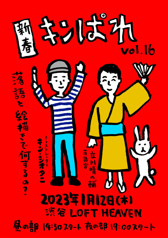 キン・シオタニのドローイングパフォーマンス、落語立川流真打、立川晴の輔の一席もあります。