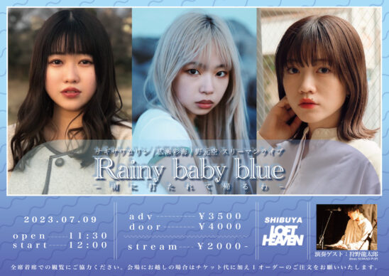 ナギサワカリンが主催する三姉妹イベント『Rainy Baby Blue〜雨に打たれて帰ってくるわ〜』がLOFT HEAVEN にお引越し!