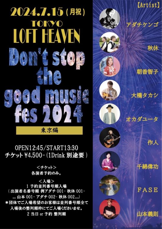 1 予約並列番号順入場(上記出演者名番号順 例アダチ001-秋休001,,山本001-アダチ002)