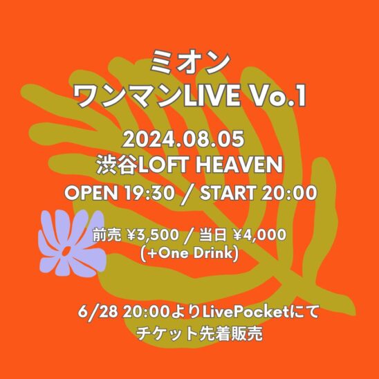 ミオン ワンマンLIVE Vo.1は公演中止となりました。