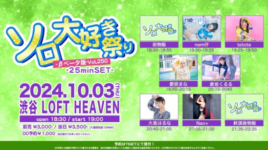 別の出演者の予約としても同時に入場出来る追加予約になります。