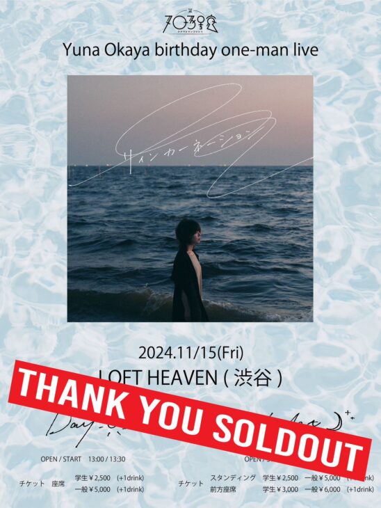 SCHEDULE 2024 11 15 Friday Yuna Okaya birthday one-man live リインカーネーション [Night] OPEN 19:00 - START 19:30 Tweet 【出演】 703号室 TICKET【チケット】 THANK YOU SOLD OUT!! <スタンディング> 学生¥2,500(+1drink) 一般¥5,000(+1drink) <座席> 学生¥3,000(+1drink) 一般¥6,000(+1drink) Share