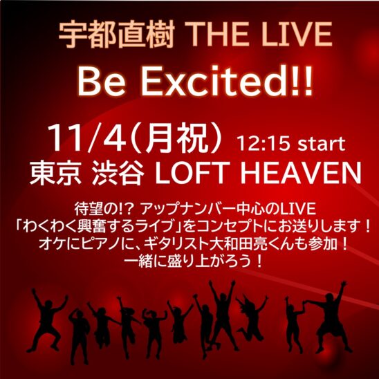 待望の!?アップナンバー中心 「わくわく興奮するライブ」がコンセプト オケにピアノにギタリスト大和田亮くんも参加! 一緒に盛り上がろう!