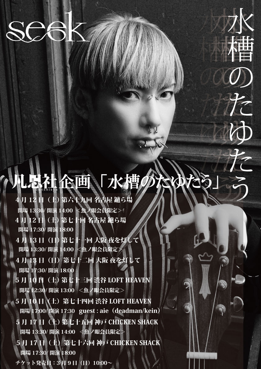 Psycho le Cemu/MIMIZUQのseekによる一人弾き語りイベント「水槽のたゆたう」