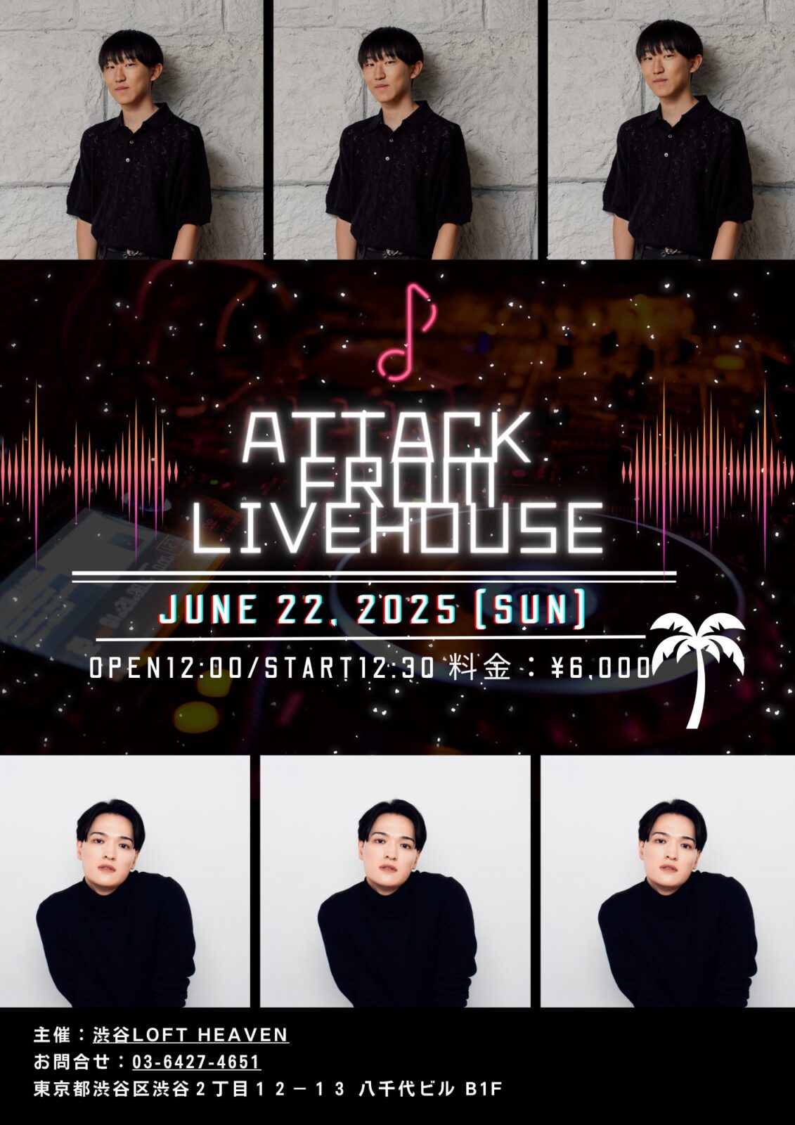 SCHEDULE 2025 06 22 Sunday DAY EVENT ATTACK FROM LIVEHOUSE 久保陽貴+海蔵亮太 OPEN 12:00 - START 12:30 Tweet 【出演】 海蔵亮太 久保陽貴 TICKET<チケット> 前売¥6,000/当日¥6,500 ※入場時ドリンク代別途¥600必要 ※整理番号順入場 https://t.livepocket.jp/e/20250622_d 販売期間:2025/6/3(火) 20:00 〜 2025/6/21(土) 23:59 #海蔵亮太#久保陽貴 Share