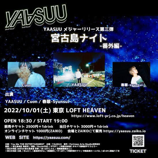 YAASUU メジャーリリース第三弾 宮古島ナイト 全国ツアー