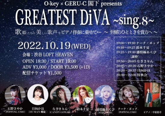 OPEN 20:00 - START 20:30(END 22:00予定)