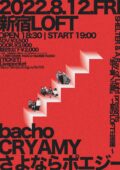 SHELTER & A Ray of Light presents 「地下室ノ正義」 〜夏のLOFT出張編 〜 bacho CRYAMY さよならポエジー OPEN 18:30 / START 19:00 ADV¥3500 / DOOR¥3900 (1DRINK代¥600 or 飲み放題¥2000) [発売]Live Pocket 6月2...