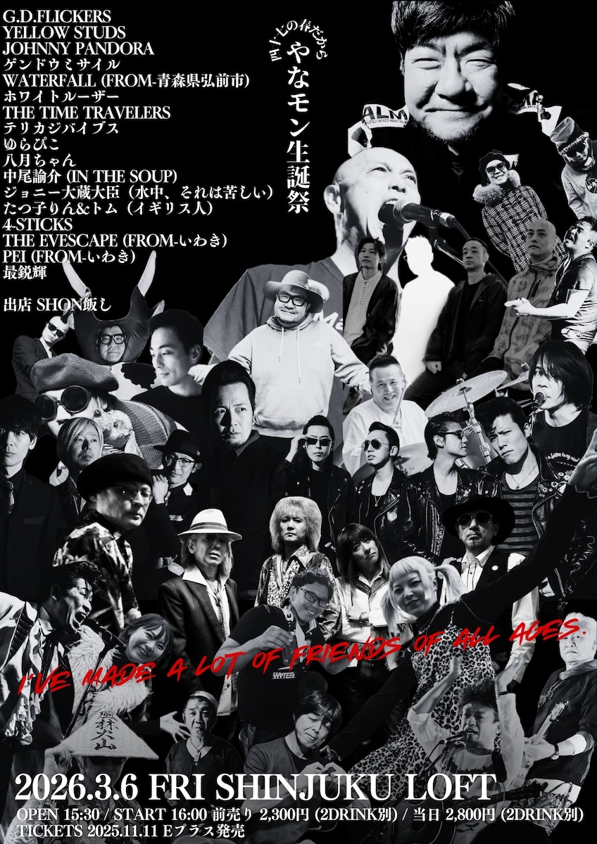 『ハッピーマンデーズ』 ゲンドウミサイル イギリス人 ザ タイムトラベラーズ ザ・キャトルミューティレーションズ KING ZABOOON OPEN 18:00 / START 18:30 ADV¥2500 / DOOR¥3000(DRINK代別¥600) [発売]各バンド予約