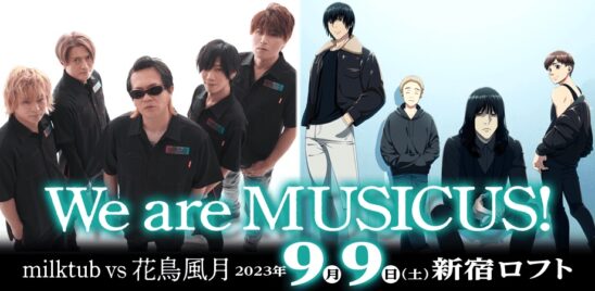 SCHEDULE 2023 09 09 Saturday milktub vs 花鳥風月〜We are MUSICUS!〜 OPEN 17:00 - START 17:30 Tweet Milktub / 花鳥風月 TICKETADV¥5500 / DOOR¥未定(DRINK代別¥600) [発売]Peatix 6月16日(金)21:00〜 https://peatix.com/group/8744 SHARE