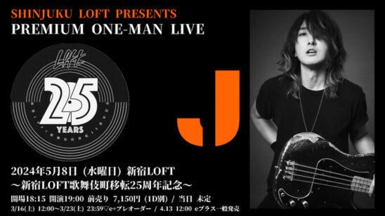SCHEDULE 2024 05 08 Wednesday SHINJUKU LOFT PRESENTS〜歌舞伎町移転25周年記念〜 『プレミアム・ワンマンライブ』 OPEN 18:15 - START 19:00 Tweet J TICKETADV¥7150 / DOOR¥未定(DRINK代別¥600)[発売]eplusプレオーダー 3月16日(土)12:00〜3月23日(土)23:59までeplus一般 4月13日(土)12:00〜 SHARE