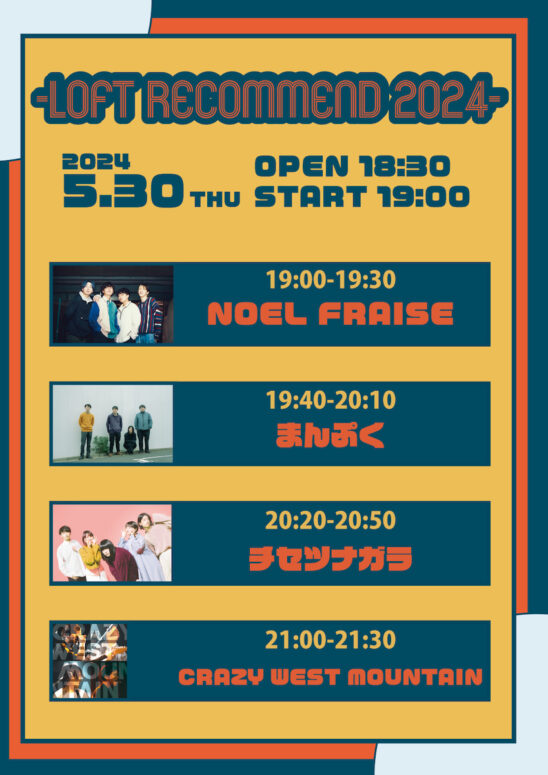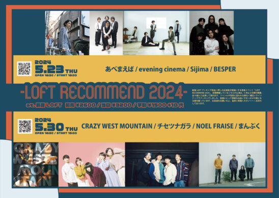 新宿LOFTブッキング担当一押しの出演者が勢揃いする音楽イベント「LOFT RECOMMEND 2024」。定期開催しているこちらの公演は、5月は2日間の開催、全8組にご出演して頂きます。ジャンルや性別に囚われる事なく幅広いラインナップでブッキングしました。皆様にとって素敵な出会いやきっかけの場となる事を願っています。お友達をお誘いの上、是非ご来場ください〜〜!お待ちしております。
