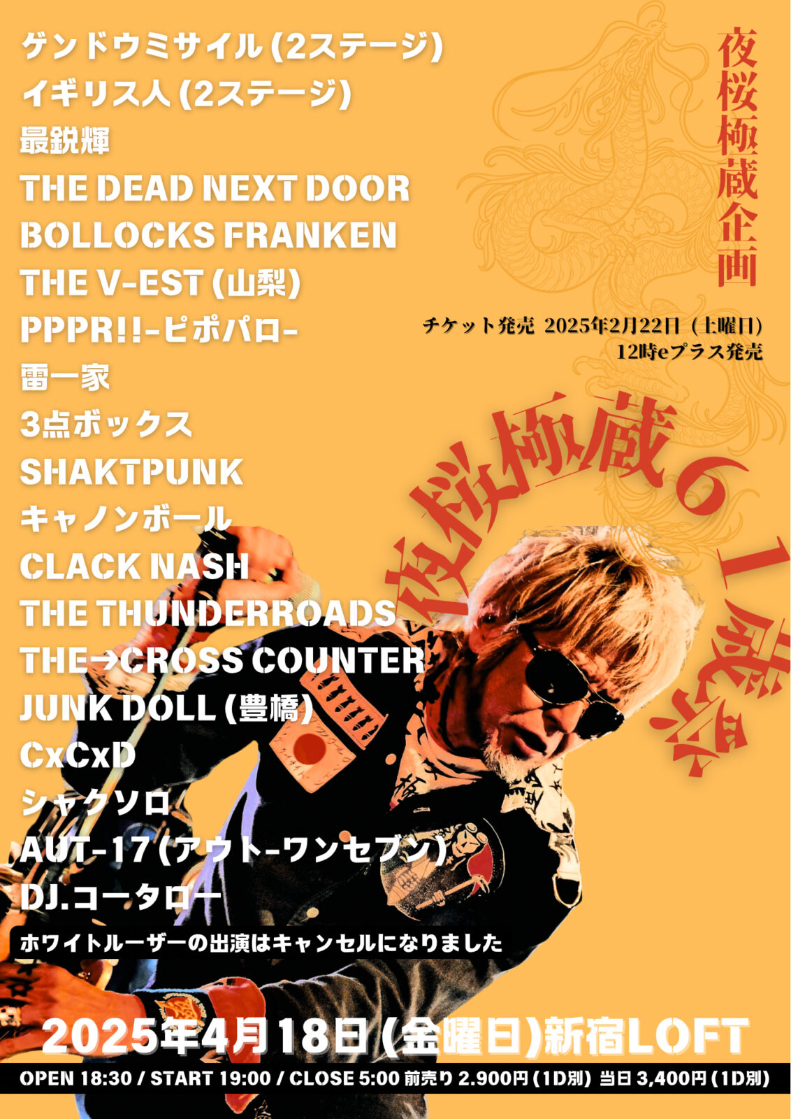- ADV¥2900 / DOOR¥3400(DRINK代別¥600)