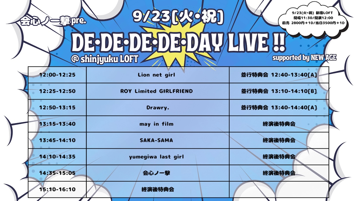 - ADV¥2800 / DOOR¥3500(DRINK代別¥600)