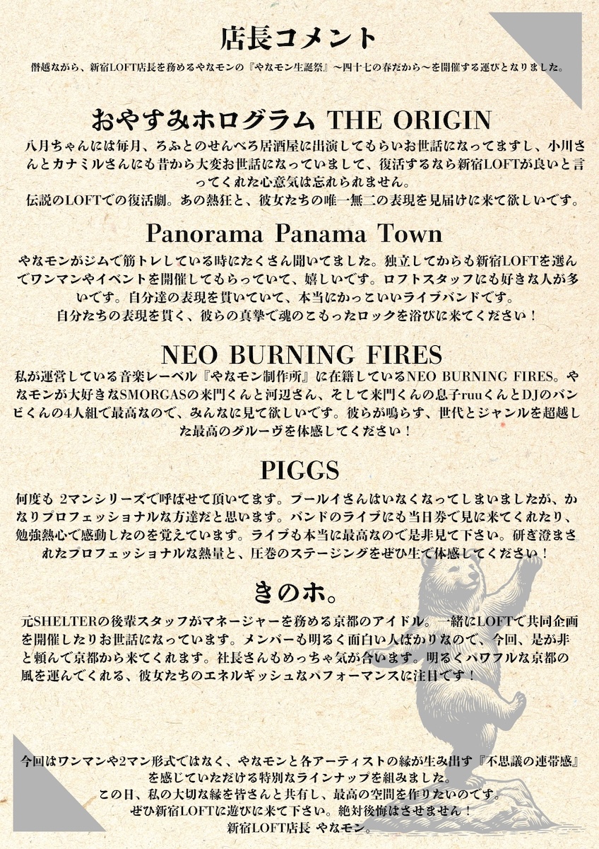 SHINJUKU LOFT PRESENTS 『やなモン生誕祭』〜四十七の春だから〜
