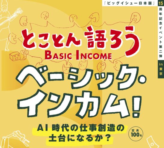 2016年にはスイスでBIの実施が国民投票で23.1%の賛成を得た。日本でも国民全員に一律7万〜10万円を給付するといった提案もある。いま、ホームレス当事者でもあるビッグイシュー誌販売者の平均月収は7万円前後、BIは社会的に排除されやすい人たちや中間就労に携わる人たちにとって、暮らしの土台になる可能性がある。また、経済効率だけでは成り立ちにくい第1次産業、また市民的な活動やアーティストなど多様な「人々がしたいと望む」「お金になりにくい」仕事の土台になることも展望できるのではないか。