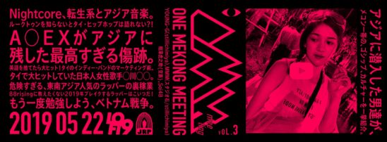 2018年春。LOFT9 Shibuya9で開催された謎の会合『ONE MEKONG MEETING』。stillichimiyaのYOUNG-G、MMMを中心にアジアの地下ヒップホップ・シーンからローカルなディスコまで潜入調査した男達によるインターネットの世界ではわからない危険な現場、ゴシップ、カルチャーを紹介したこの会合は大きな話題を呼び、雑誌『STUDIO VOICE : Flood of Sounds from Asia-そこで生まれる音楽-』で特集されることになった。