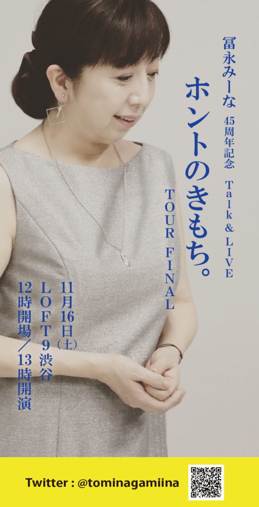 SCHEDULE 2019 11 16 Saturday DAY EVENT 冨永みーなTalk&LIVE 「ホントのきもち。」ツアーFinal OPEN 12:00 - START 13:00 Tweet 【出演】冨永みーな・野口久和(Piano) 【Guest】田中真弓・松野太紀 冨永みーな声優45周年記念Talk&LIVE 長~いお付き合いの田中真弓さん松野太紀さんと いろいろと懐かしいお話を! LIVEでは新曲披露も! 昨年Loft9で行われた「ホントのきもち。」ツアーFinal LIVEです。 TICKET前売¥4,500 / 当日¥4,800 (飲食代別・要1ドリンク以上オーダー) 当日あり!開場後、店頭にて販売いたします ※フラワースタンドの設置はできません。お花をお贈り頂く場合は卓上サイズのアレンジメントをご利用ください。 Share