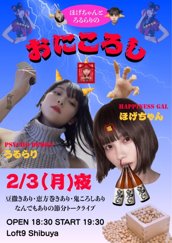 「生きてるだけで福」なほげちゃんと「本当は鬼」なろるらりがお送りする節分イベントを開催。